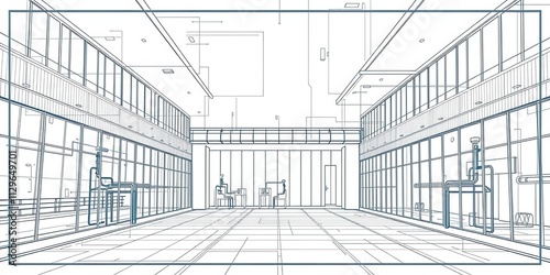 Modern architectural blueprint design with geometric shapes and clean lines, modern, industrial
