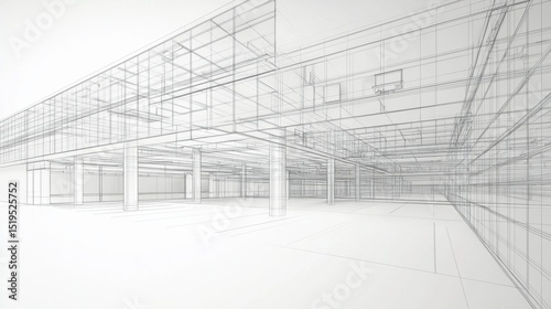 Modern architectural design sketch showcasing open space with structural elements in a minimalist style