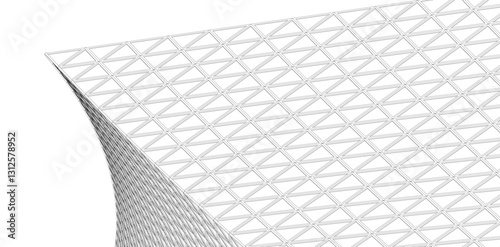 Modern Architectural Facade with Geometric Triangular Grid Pattern – 3D Rendering of Futuristic Building Structure