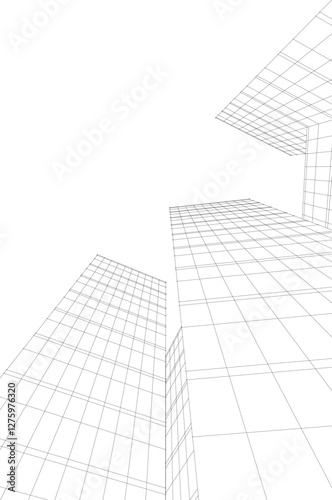 Modern Architectural Wireframe: Abstract Geometric Skyscrapers and Urban Perspective