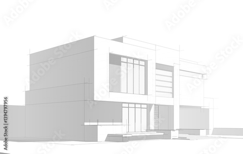Modern Architectural Wireframe Sketch – Vector Blueprint of Contemporary Building