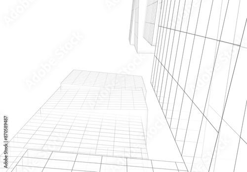 Modern architecture building 3d drawing