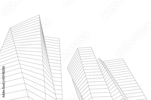 Modern architecture building. Linear 3d illustration. Concept sketch