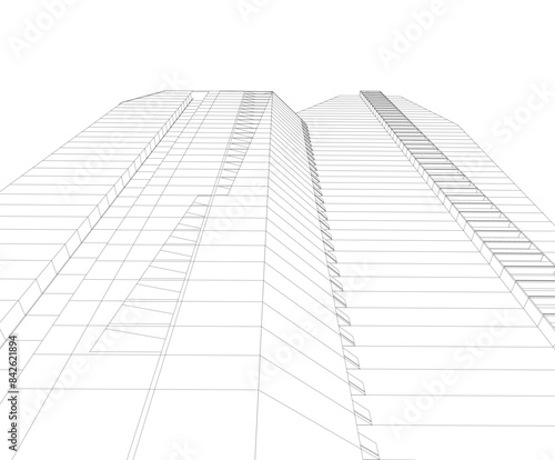 Modern architecture building vector 3d drawing
