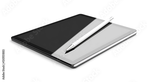 Modern asset management tablet and stylus in-house office furniture minimalist design white background