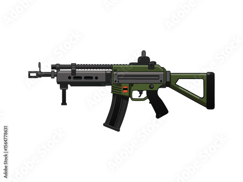 Modern automatic assault rifle with tactical features and a collapsible stock isolated on white background