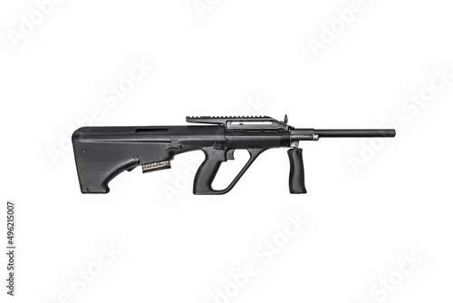 Modern automatic rifle isolated on white background. Weapons for police, special forces and the army. Automatic bullpup carbine. Assault rifle on white.