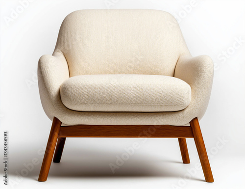 Modern beige armchair with soft texture and wooden legs, perfect for contemporary interiors. This stylish piece adds comfort and elegance to any space
