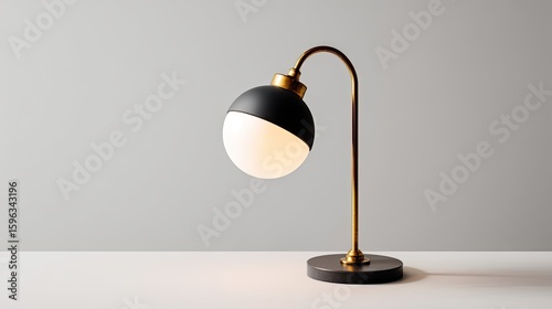 Modern Black and Gold Desk Lamp with Spherical Shade on White Surface