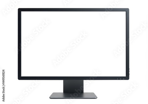 Modern Black Computer Monitor Isolated White Background Digital Screen Display Technology Device