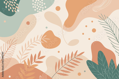 Modern botanical background with earthy tones creates a peaceful, organic feel for your design projects