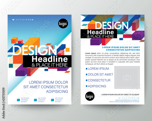 Modern brochure cover flyer poster design layout vector template. Colorful abstract isometric block in random size graphic element background.