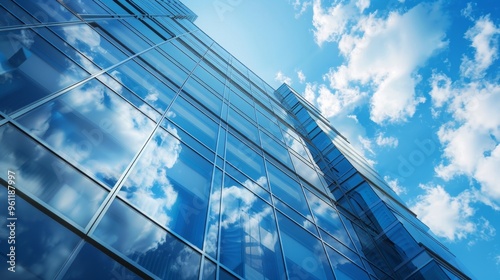 Modern building in aluminum siding and flat angled roofline and front windows.