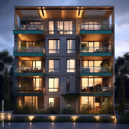 modern building with balconies, ai generative
