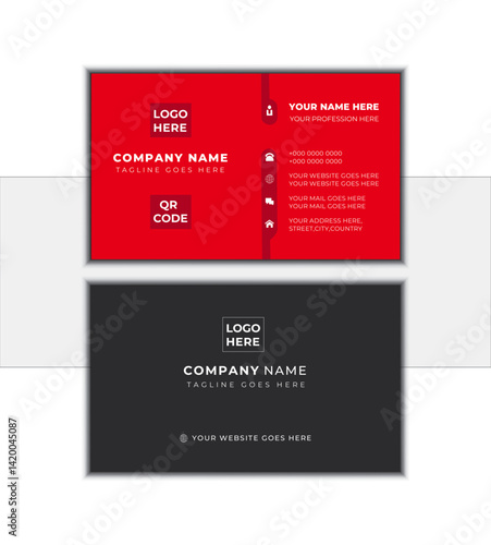 Modern business card template red black colors. vector abstract creative Stock Vector