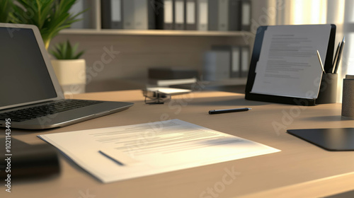 Modern Business Desk Setup with Technology and Organization