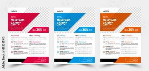 Modern Business Flyer Bundle – A4 Corporate Marketing Templates with Abstract Design Elements in Red, Blue, and Orange – Editable Vector Layout for IT Company Promotion, Poster, Brochure, and Cover.