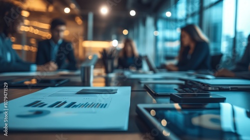 Modern business meeting space, featuring a polished conference table, advanced technology, and a collaborative atmosphere for effective teamwork and communication