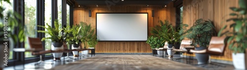 Modern Business Presentation in Elegant Conference Room with Projector Displaying Digital Art, Realistic Team Collaboration