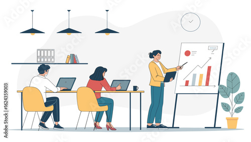 Modern business team collaborating on a project, perfect for presentations or website banners.