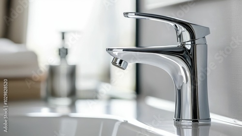 Modern Chrome Faucet in Clean White Bathroom Setting