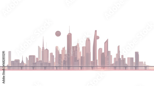 Modern City Skyline Buildings Urban Landscape Elevated Highway Dusk seasons