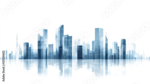 Modern city skyline reflection, urban development, business, future