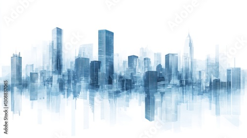 Modern city skyline, urban landscape, architectural design, background reflection, business concept