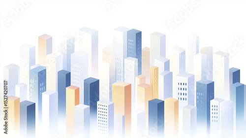 Modern city skyline with abstract buildings soft colors and gradients, creating serene