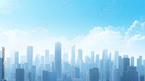 Modern City Skyline with CBD Office Buildings - Drone View and Clear Blue Sky