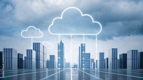 Modern City Skyline with Digital Cloud Concept and Dramatic Sky Background