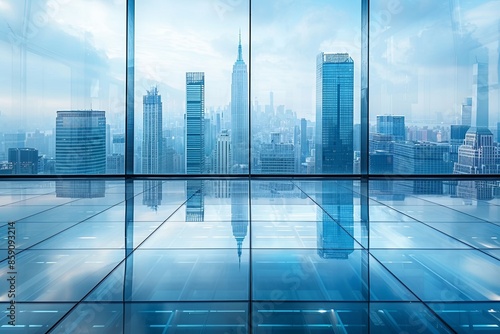 Modern city skyline with skyscrappers and reflection created with Generative AI