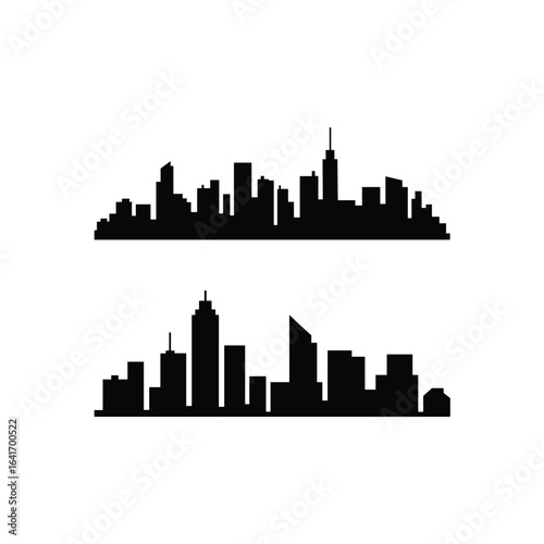 Modern Cityscape Silhouette Illustration: Black and White Skyline Designs for Urban Projects and Architectural Visuals, Perfect for Digital Artwork and Graphic Design
