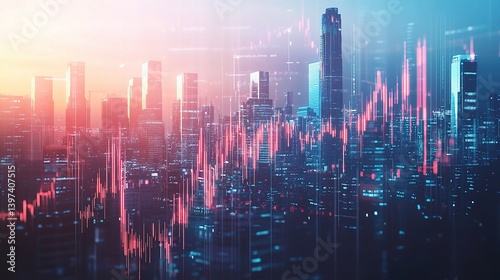 Modern Cityscape with Investment Data and Financial Growth Chart