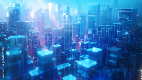 modern cityscape with skyscrapers and buildings, abstract blue background for digital design