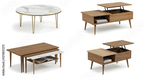 Modern Coffee Tables Collection: A collection of stylish and functional coffee tables, showcasing various designs with a focus on elegant aesthetics and practical features for home decor