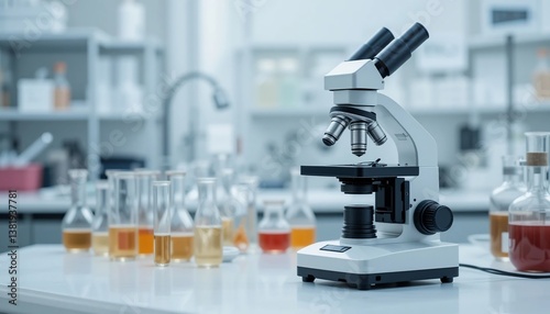 Modern Compound Microscope in a Scientific Laboratory with Samples