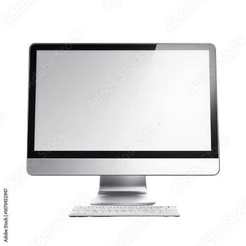 Modern Computer Monitor and Keyboard with Blank White Screen on Black Background display, Isolated On White, Png Transparent, Cut Out