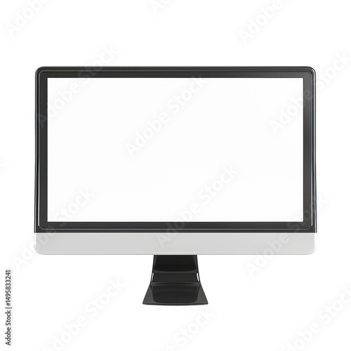 Modern computer monitor on a sleek desk, showcasing a blank screen in a minimalist office
