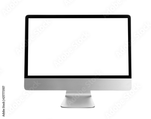 Modern computer monitor on white background, mock up with space for text