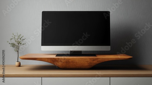 Modern Computer Monitor on Wooden Stand