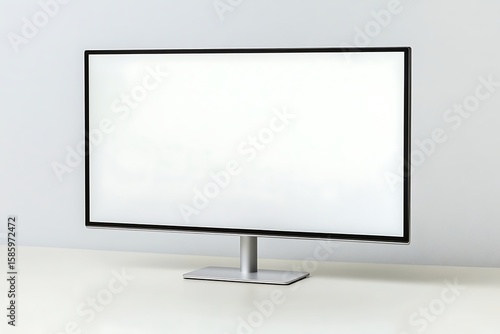 Modern computer monitor with blank screen on desk for mockup and advertising display