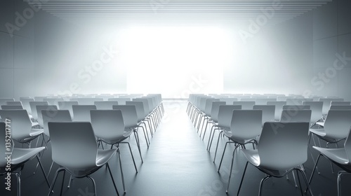 Modern conference room with empty chairs.