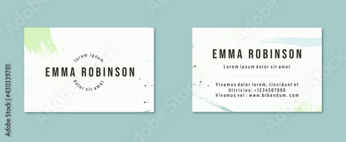 Modern creative and clean business card template.Trend style with paint strokes of green and blue colors.