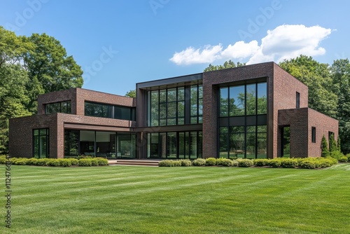 Modern cubic architecture minimalist design brown brick exterior large windows