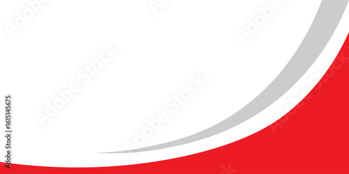 Modern curved red and gray wave design on clean white background, abstract business layout.