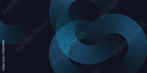 Modern dark blue abstract horizontal banner background with glowing geometric lines. Shiny blue diagonal rounded lines pattern. Futuristic concept. Suit for cover liquid wave