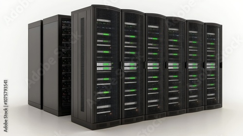 Modern Data Center Server Racks with Glowing Lights