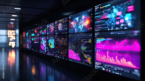 Modern Data Visualization Wall in High-Tech Control Room Environment