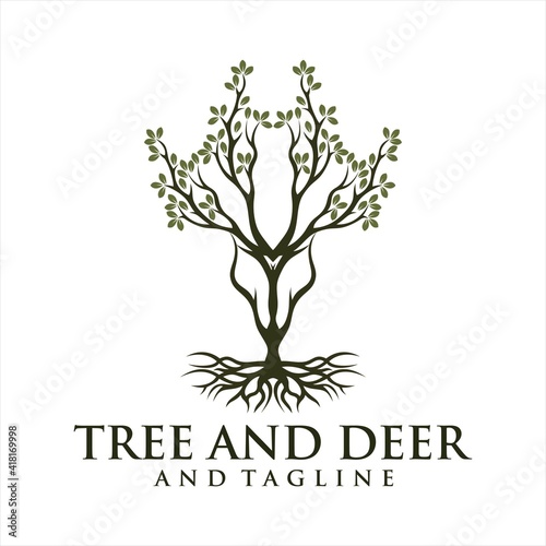Modern deer head logo with leaf. Abstract, creative logo design Color and text can be changed according to your need,